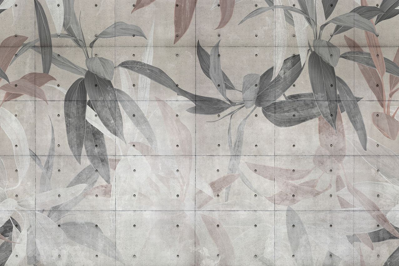 Add an edgy, industrial charm to your space with a mural featuring a weathered concrete backdrop accented by rivets and overlaid with bold green foliage. This design blends urban ruggedness with natural beauty, creating a striking contrast that brings texture, depth, and a touch of greenery to any room. Perfect for modern interiors with a taste for industrial elegance, this mural makes a powerful style statement.