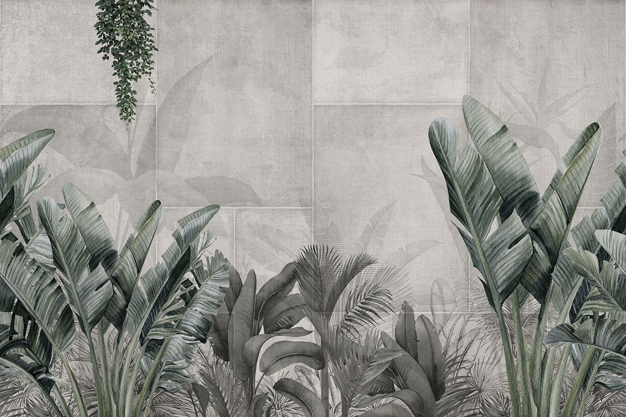 Introduce an urban yet natural vibe to your space with a mural featuring a distressed concrete industrial backdrop, overlaid with large tropical leaves. This design blends the rugged, raw appeal of industrial style with the lush, vibrant energy of tropical foliage, creating a striking contrast that adds depth and texture to any room. Perfect for modern, eclectic interiors, this mural brings an exciting fusion of nature and urban sophistication to your walls.