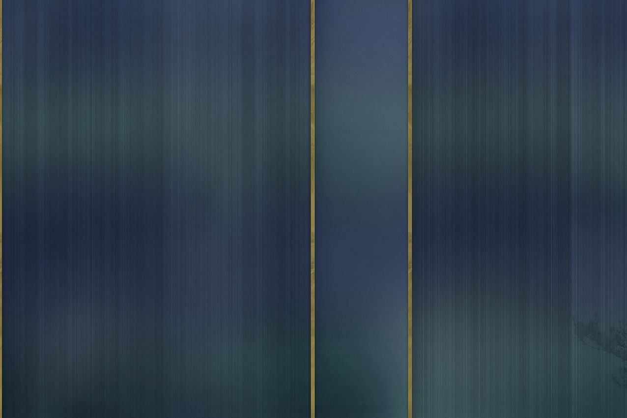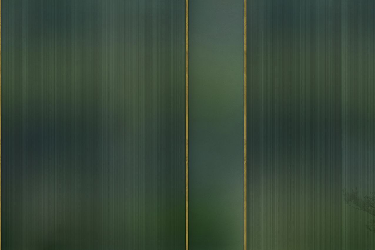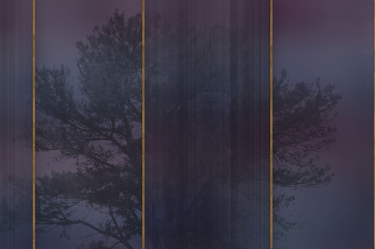 Enhance your space with a striking mural featuring a gradient vertical stripe background, seamlessly transitioning from light to dark hues. Golden vertical dividing lines add a touch of elegance, while a strong, majestic pine tree stands tall amidst the design. This combination of bold geometry and natural beauty creates a perfect balance of modern sophistication and timeless tranquility, ideal for adding a sense of depth, strength, and style to any room.