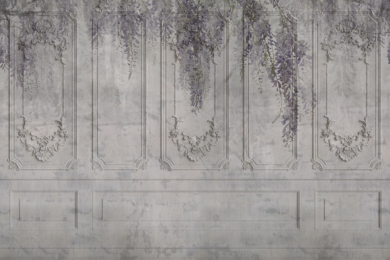 Add timeless elegance to your space with a mural featuring cascading wisteria vines against a beautifully sculpted Roman stone frame. The delicate purple blooms of the wisteria contrast gracefully with the intricate, classical architecture, blending the romance of nature with the grandeur of Roman craftsmanship. Perfect for creating a refined, sophisticated atmosphere, this mural brings a touch of old-world charm and natural beauty to any room.