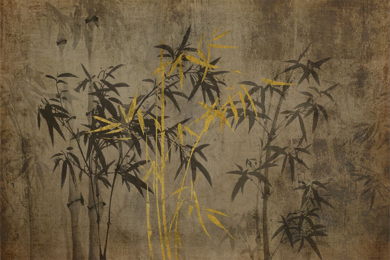 Embody the timeless elegance of bamboo with a mural that features finely detailed bamboo leaves in contrasting shades of gold and ink. The interplay of these colors, set against a backdrop with a subtle metallic texture, adds a refined, artistic touch to your space. Bamboo, a symbol of grace and strength cherished by scholars and poets, brings both nature's beauty and cultural sophistication into your home. Perfect for creating a serene, balanced atmosphere with an artistic flair.