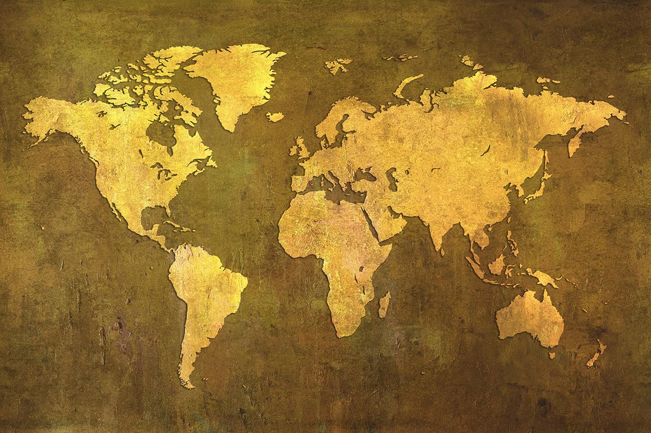 Transform your space with a striking mural featuring a world map with a metallic finish, where each region is enhanced by varying shades of light and shadow. The map’s surface is layered with intricate textures, adding depth and dimension to the design. This sophisticated and modern take on a global map brings a sense of exploration and elegance to your room, perfect for creating a bold, dynamic focal point with a refined, worldly appeal.