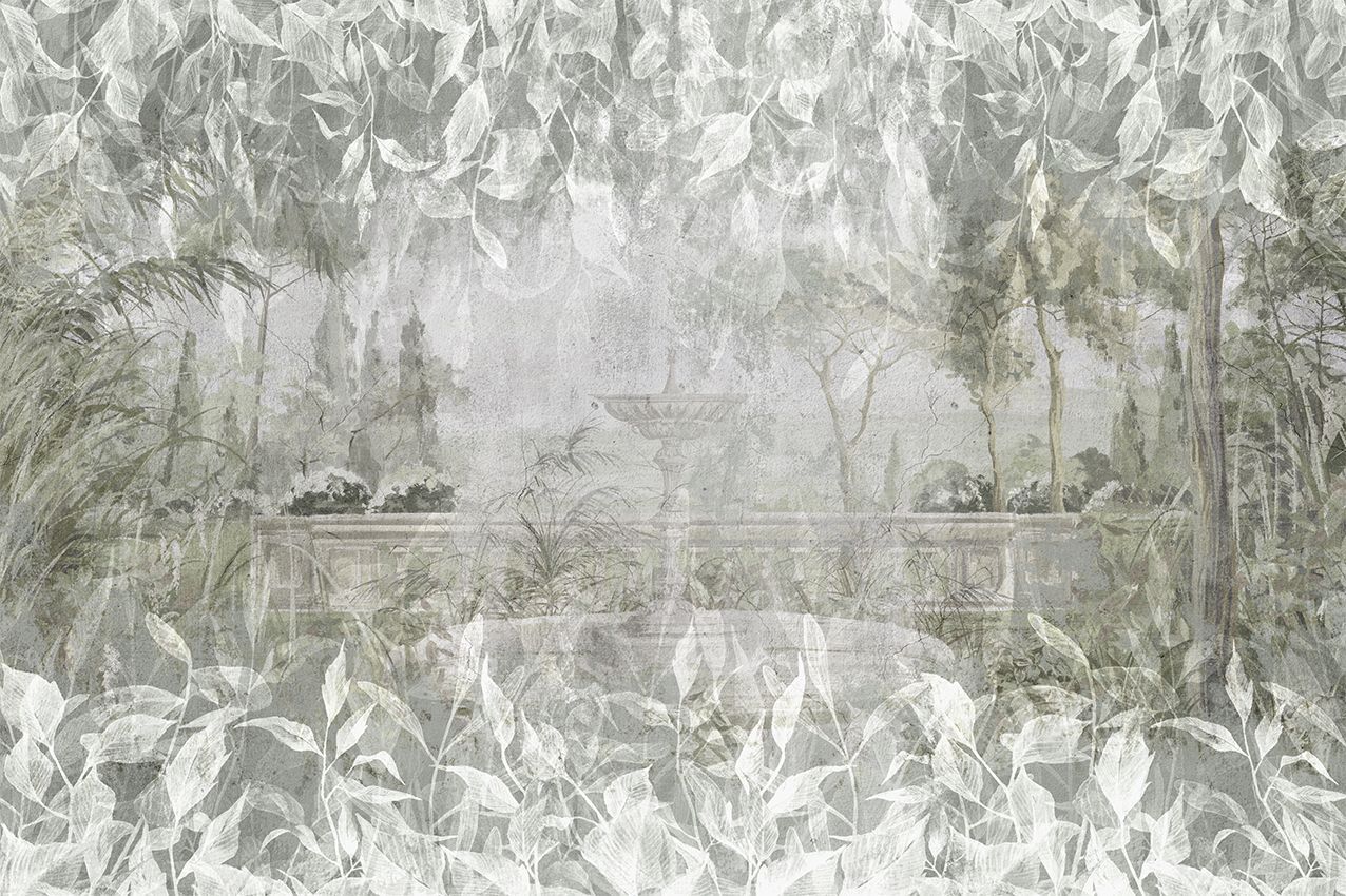 Create a serene escape within your space with a mural that offers a view through lush green foliage, revealing a distant fountain in the background. This design invites a sense of depth and tranquility, as if looking into a hidden garden oasis. Perfect for adding a refreshing, natural touch to any room, this mural brings the peaceful allure of the outdoors indoors, creating a calming and rejuvenating atmosphere.