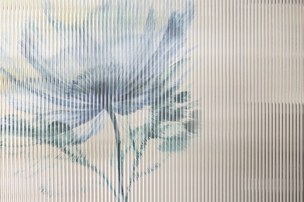 Add a bold, contemporary touch to your space with a mural featuring a large, striking flower layered over textured, ribbed glass. The interplay of smooth and textured surfaces creates a dynamic, modern aesthetic that blends natural beauty with architectural elegance. Perfect for those seeking to make a statement, this mural brings depth, sophistication, and a fresh, artistic vibe to any room.