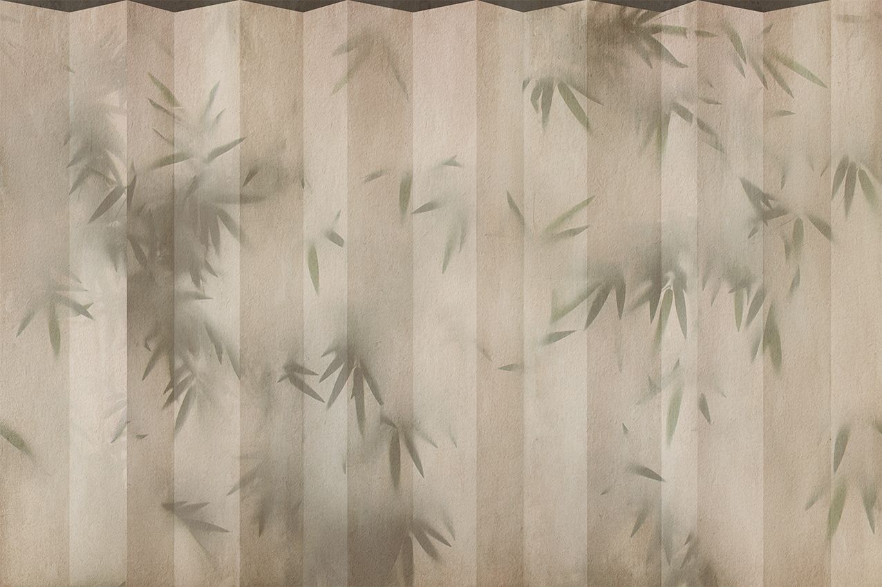Add a touch of elegance and tradition to your space with a mural that features a fan-folded paper background, skillfully crafted to create a dynamic, textured effect. Floating gently above, bamboo leaves appear and disappear, evoking a sense of movement and tranquility. This design blends classical art with a modern, artistic twist, perfect for creating a serene and sophisticated atmosphere in any room. Ideal for those who appreciate the delicate beauty of Eastern symbolism, this mural brings harmony, grace, and timeless elegance to your walls.